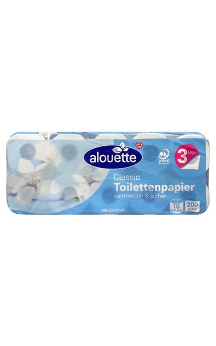 Izvēlieties Alouette tualetes papīru ikdienas lietošanai, lai sniegtu sev patīkamu komfortu. Plastmasas iepakojumu glabājiet bērniem nepieejamā vietā, lai izvairītos no nosmakšanas riska.