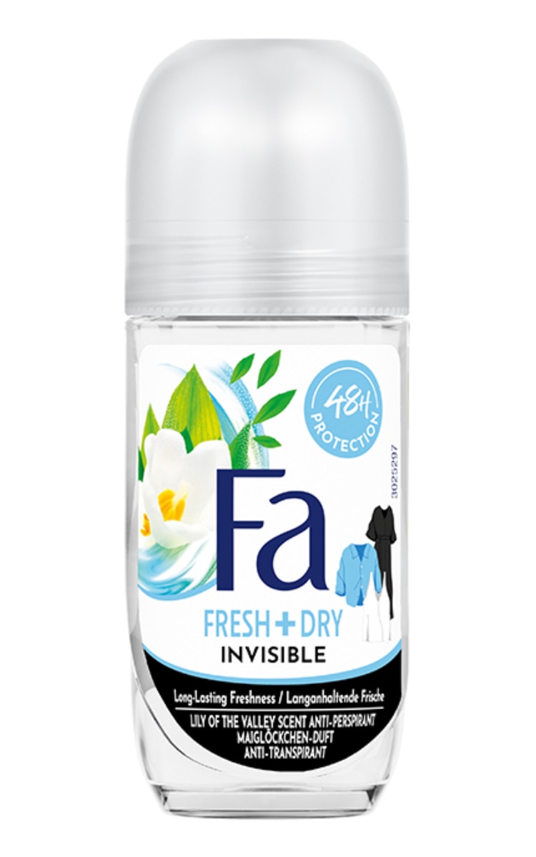 Esiet neatvairāma ar valdzinošo un pavedinošo Fa Invisible Fresh Lily of the Valley pretsviedru un prettraipu dezodorantu!