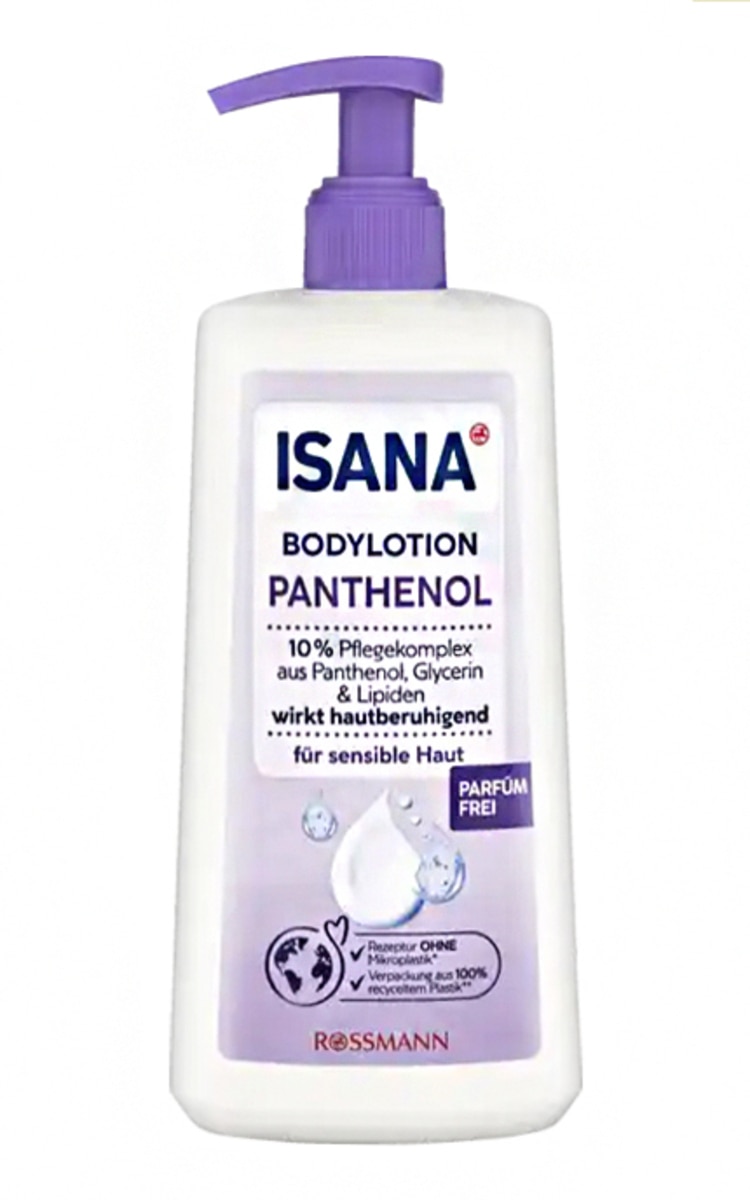 Isana ķermeņa losjons Panthenol ar 10% pantenola, glicerīna un augu lipīdu kopjošo kompleksu nodrošina intensīvu ādas mitrināšanu. Tas atbalsta dabisko ādas aizsargbarjeru un iedarbojas nomierinoši, īpaši piemērots jutīgai ādai. Losjons nomierina sausu un saspringtu ādu, mazina sausuma radīto sasprindzinājuma sajūtu un ātri uzsūcas, jo tā tekstūra nav taukaina. Tas piešķir ādai ievērojamu elastību un ir saudzīgs pret ādas mikrobiomu.