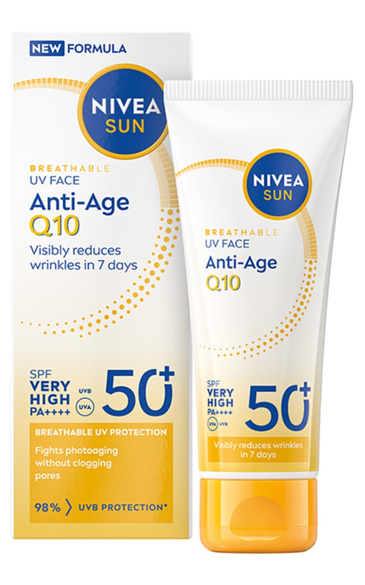 Atsauksmes NIVEA SUN UV Face Q10 Anti-Age SPF50 saules aizsargkrēms normālai un sausai sejas ādai, 50ml