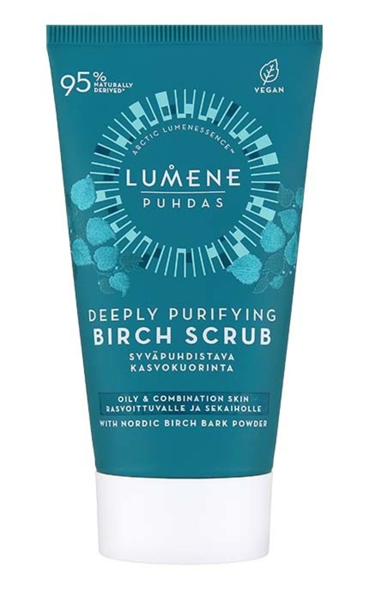 Lumene Puhdas Birch maigais skrubis, kas satur dabiskas bērza mizas daļiņas ādas atmirušo šūnu nolobīšanai, attīra ādu un sašaurina poras, kā arī padara ādu pavisam svaigu, gludu un matētu. Dziļi attīrošais sastāvs bez eļļas ir ideāli piemērots jaukta tipa un taukainai ādai.