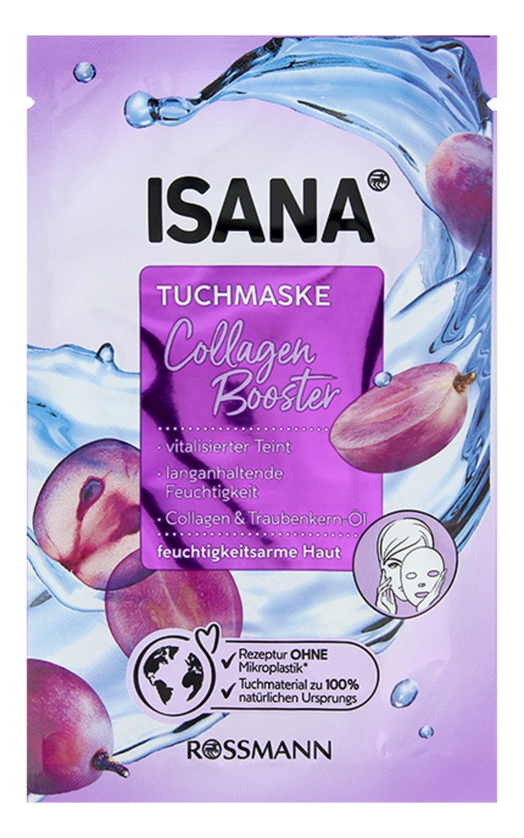 Isana sejas maska ar kolagēnu un vīnogu kauliņu eļļu. Sejas maska veicina ādas dabisko atjaunošanās procesu un samazina grumbu dziļumu. Kolagēns nodrošina ādas elastību un tvirtumu, kā arī veicina maskas mitrinošo iedarbību. Sastāvā esošie lipīdi baro ādu un padara to elastīgu.