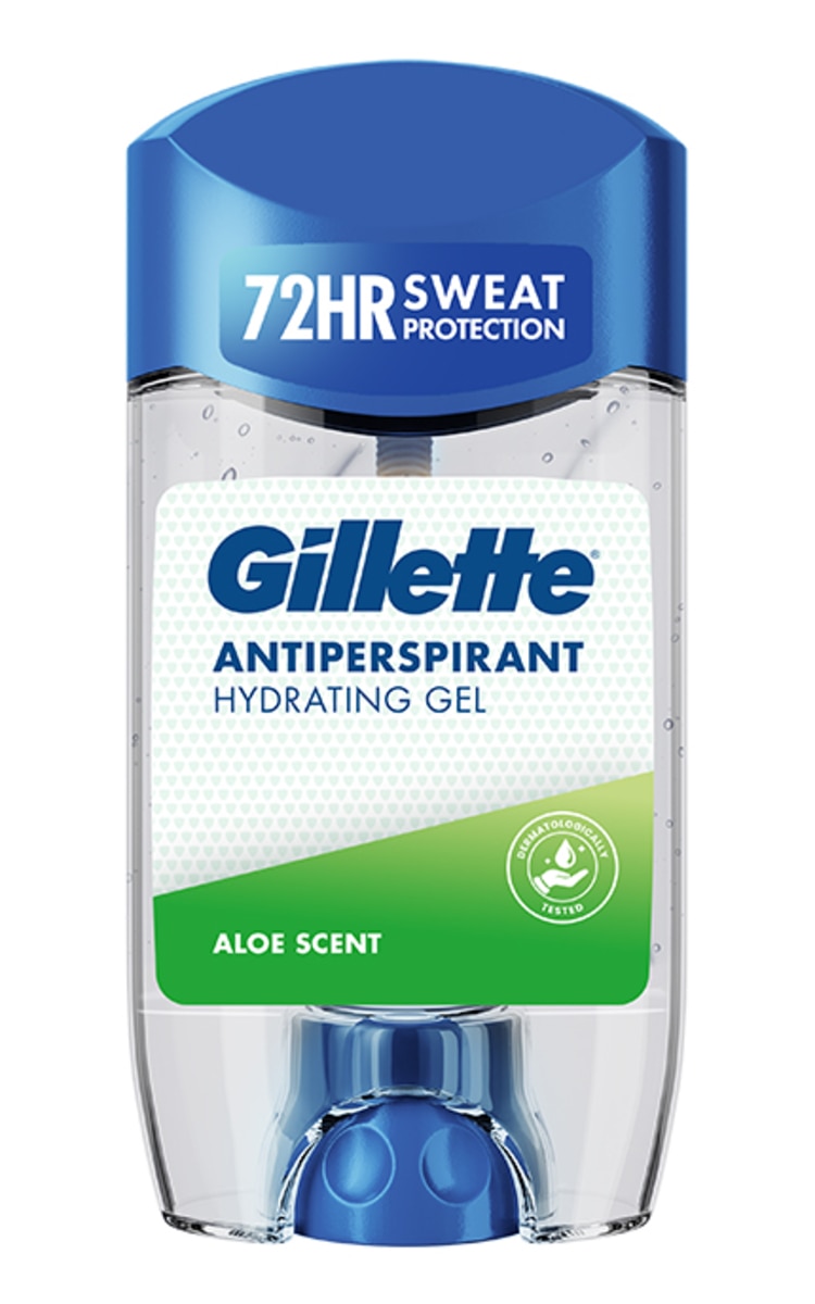 Gillette Aloe antiperspirants maksimālai aizsardzībai līdz 72 stundām. Mitrinošā želeja ar 5X aktīvo aizsardzību ātri iedarbojas, pasargā no sviedriem un nepatīkamā aromāta, neatstāj baltus traipus uz apģērba un palīdz samazināt baktērijas, kas izraisa nepatīkamo aromātu. Antiperspiranta aromāts ir nomierinošs ar izteiktām citrusaugļu virsnotīm, ko līdzsvaro tīra ūdens vidējās notis un papildina siltas dzintara un muskusa pamatnotis. Formula uzklājas neredzami un paliek neredzama visas dienas garumā.
