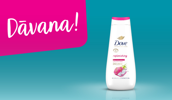 Pērc jebkurus DOVE vai DOVE Men produktus par summu virs 7,99 eiro vienā pirkumā un saņem dāvanā DOVE Replenishing dušas želeju, 400 ml. Tikai e-veikalā!