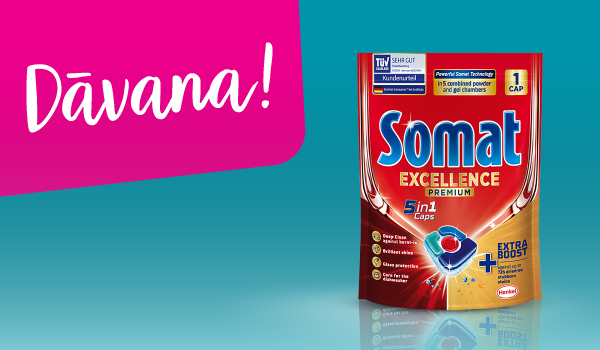 Pērc jebkuru līdzekli trauku mašīnai un saņem dāvanā SOMAT Excellence Premium kapsulu trauku mazgāšanai, 1 gab. Tikai e-veikalā!