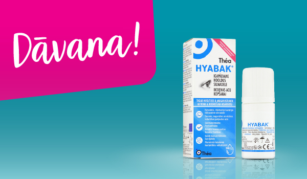 Pērc jebkuras MIRU vienas dienas kontaktlēcas (30 gab.) vai SOFLENS Daily Disposable kontaktlēcas (30 gab.) un saņem dāvanā THEA Hyabak 0,15% mitrinošos pilienus, 10 ml. Tikai e-veikalā!