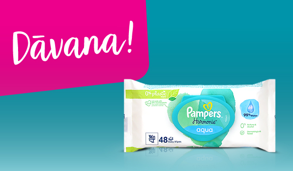 Pērc jebkurus 2 PAMPERS autiņbiksīšu iepakojumus vienā pirkumā un saņem dāvanā PAMPERS Aqua Harmonie mitrās salvetes, 48 gab. Tikai e-veikalā!