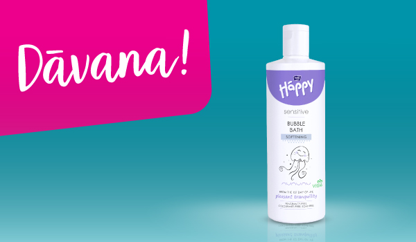 Pērc jebkurus HAPPY produktus par summu virs 6,99 eiro vienā pirkumā un saņem dāvanā HAPPY Sensitive vannas putas bērniem, 400 ml. Tikai e-veikalā!