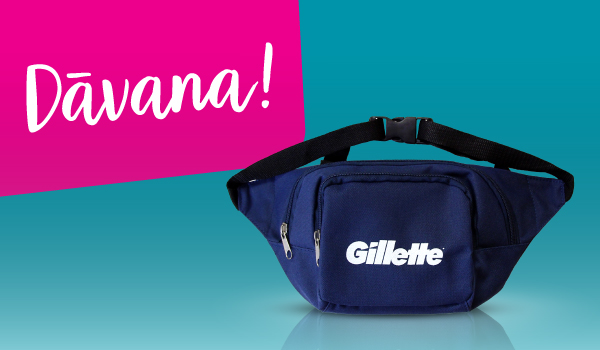 Pērc jebkurus 2 GILLETTE produktus vīriešiem vienā pirkumā un saņem dāvanā GILLETTE jostas somu. Tikai e-veikalā!