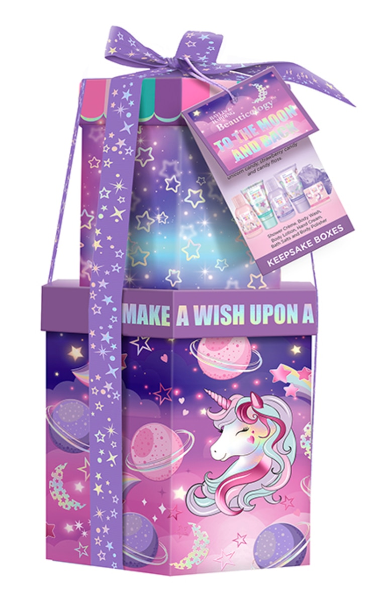 Unicorn Candy Fragranced Body Wash: AQUA (WATER, EAU), SODIUM LAURETH SULFATE, SODIUM CHLORIDE, COCAMIDOPROPYL BETAINE, PHENOXYETHANOL, PEG-150 DISTEARATE, PARFUM (FRAGRANCE), SODIUM BENZOATE, POTASSIUM SORBATE, DISODIUM EDTA, CITRIC ACID, BENZOPHENONE-4, BENZALDEHYDE, BENZYL ALCOHOL.
