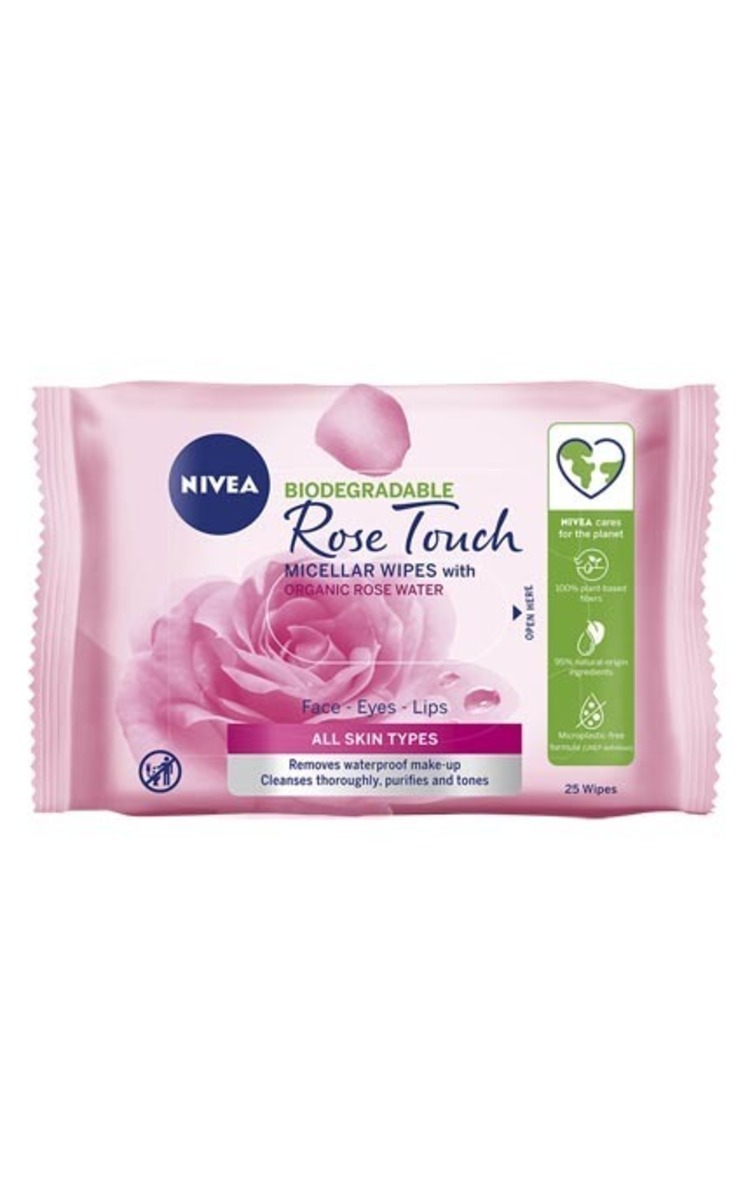 Salvetes ar rožu ūdeni visa veida dekoratīvās kosmētikas noņemšanai. Piemērotas jutīgai ādai. Nesatur parabēnus.