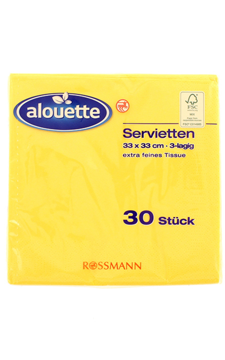 Atsauksmes ALOUETTE Dzeltenas vienkrāsainas salvetes, 33x33cm, 30gab.