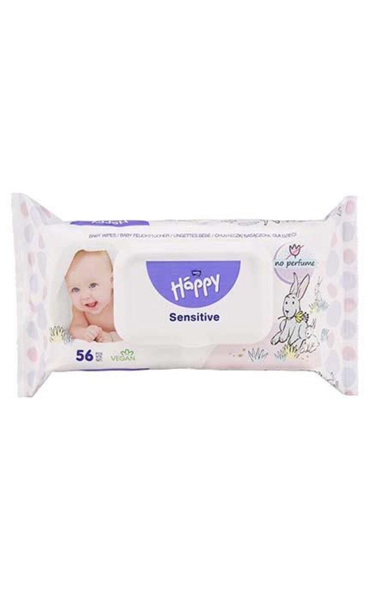 HAPPY Sensitive mitrās salvetes ar vāciņu, 56gab. 56 gab.