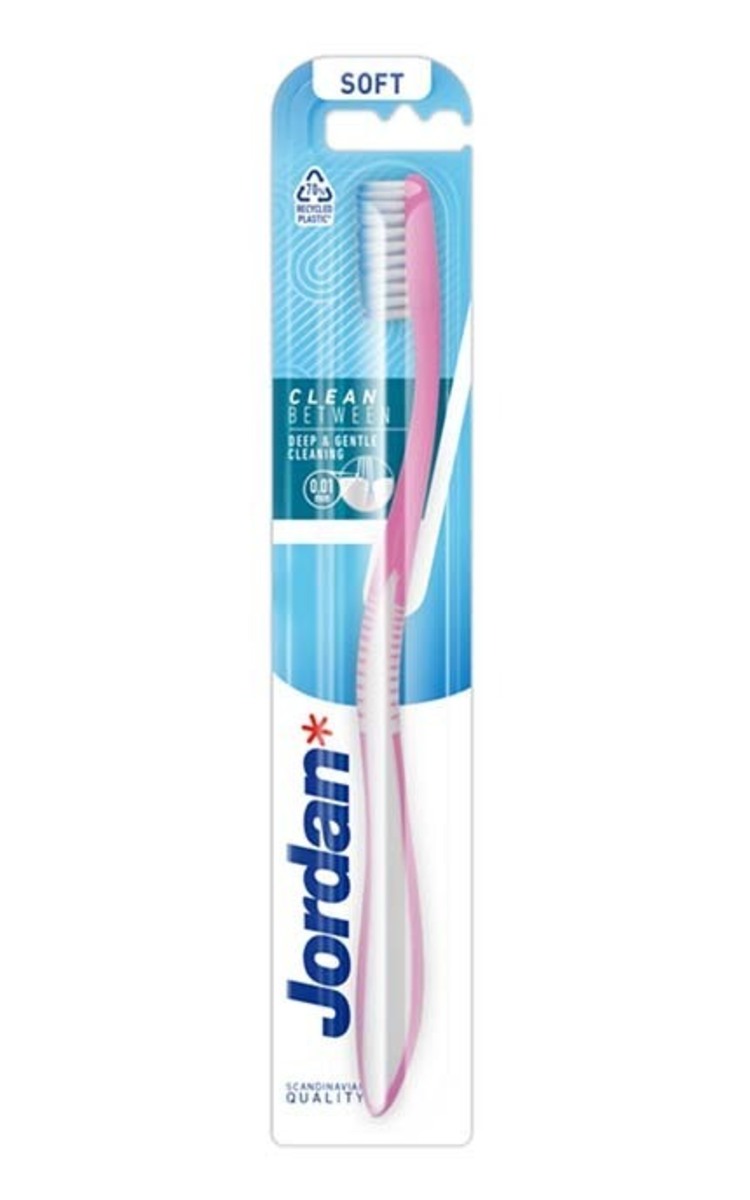Jordan Clean Between soft zobu birste ar novatorisku un modernu dizainu jutīgu smaganu tīrīšanai ar mīkstiem sariņiem.