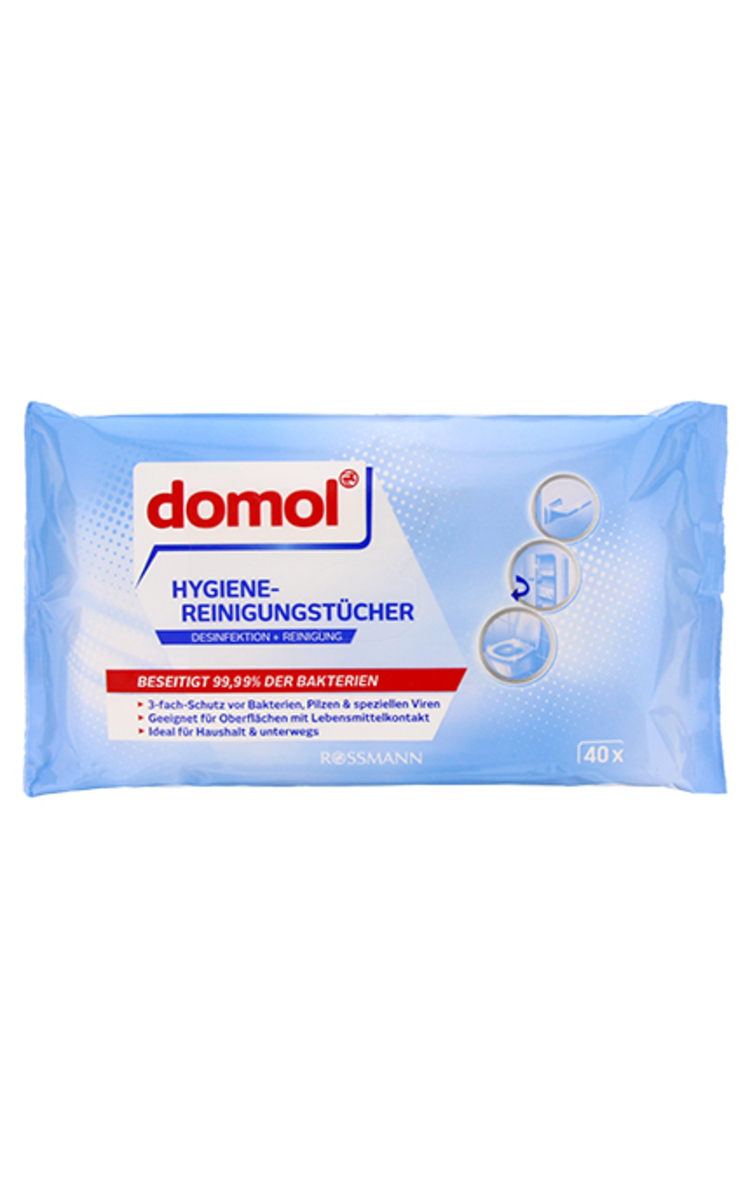 Domol higiēniskās mitrās salvetes jau pēc vienas minūtes efektīvi iedarbojas pret baktērijām (P.aeuruginosa, E.coli, S.aureus, E.hirae), raugiem (C.albicans), sēnēm (A.niger) un īpašiem vīrusiem (GVDV, Vaccinia, HIV, HBV, HCV, Herpes Simplex, H1N1, H5N1, SARS).