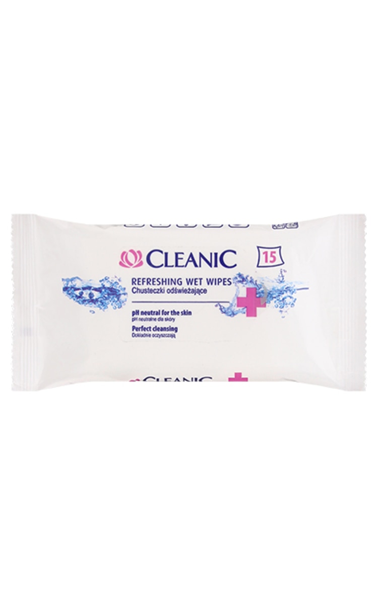 CLEANIC Atsvaidzinošas mitrās salvetes rokām un ķermenim, 15gab.