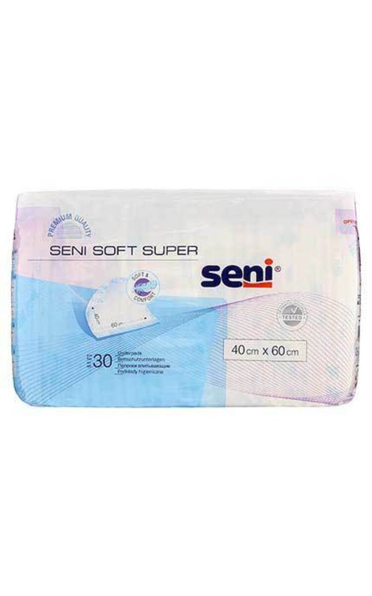 SENI SOFT SUPER augstas uzsūktspējas absorbējošie paladziņi. Lieliski piemēroti kā papildus aizsardzībai pie autiņbiksīšu nomaiņas, palīdz saglabāt gultas veļas tīrību.