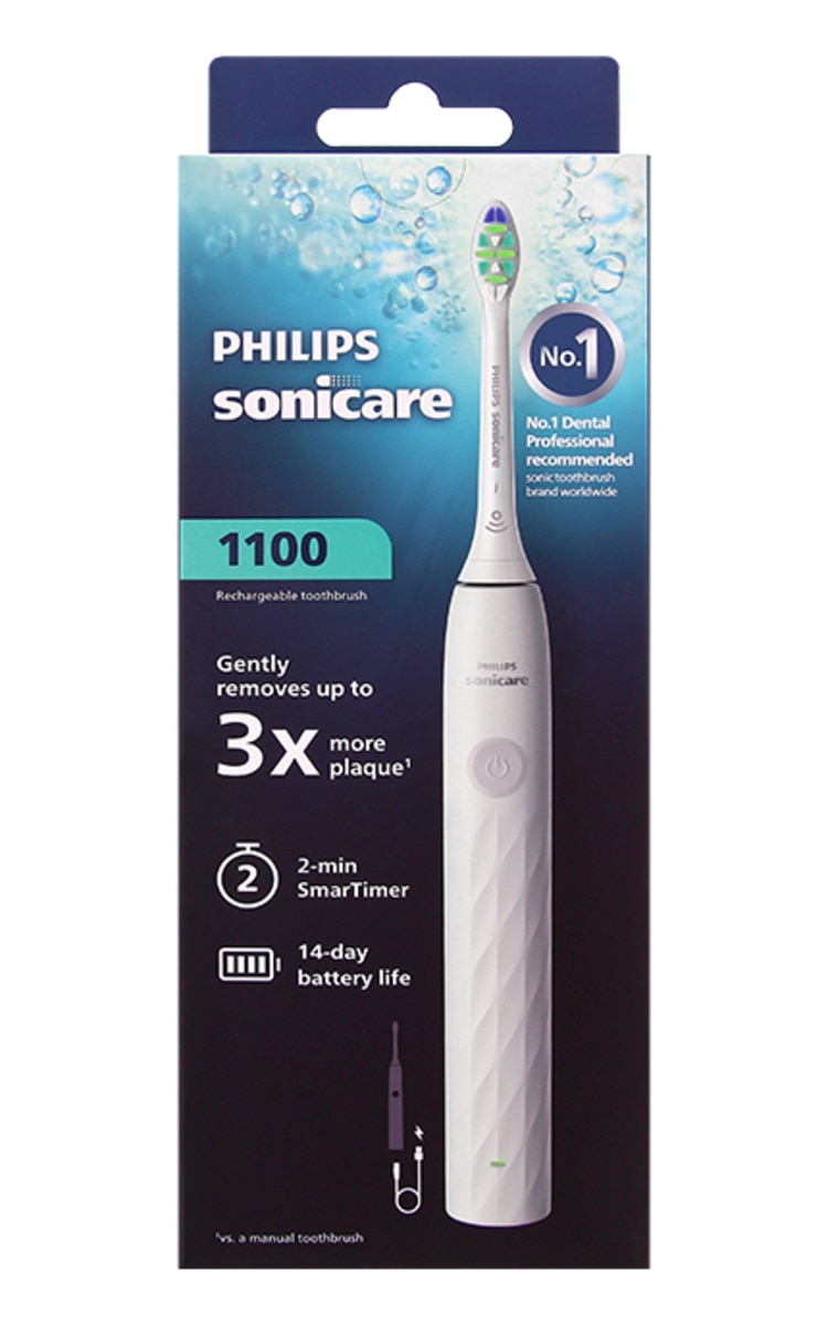 Philips Sonicare 1100 sērijas elektriskā zobu birste ir paredzēta ikdienas zobu un smaganu kopšanai. Tā saudzīgi noņem līdz pat trīs reizes vairāk aplikuma nekā manuālā zobu birste, palīdzot uzturēt veselīgus zobus un smaganas. Tai piemīt vairākas priekšrocības: