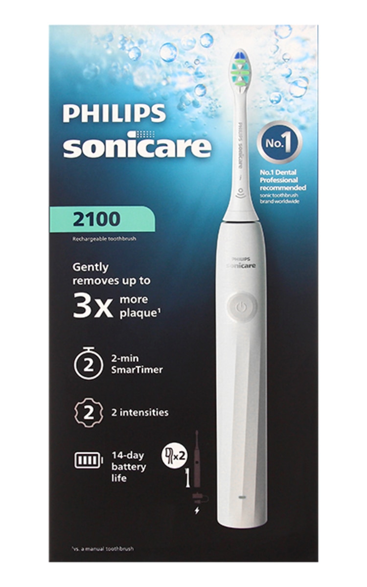 Philips Sonicare 2100 sērijas elektriskā zobu birste ir paredzēta ikdienas zobu un smaganu kopšanai. Tā saudzīgi noņem līdz pat trīs reizes vairāk aplikuma nekā manuālā zobu birste, palīdzot uzturēt veselīgus zobus un smaganas. Tai piemīt vairākas priekšrocības: