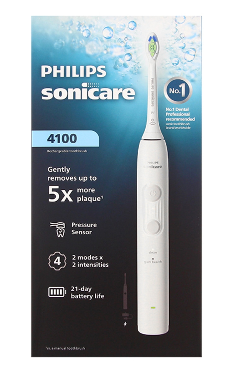 Philips Sonicare 4100 sērijas elektriskā zobu birste ir paredzēta ikdienas zobu un smaganu kopšanai, īpaši tiem, kas vēlas efektīvāku, bet joprojām saudzīgu tīrīšanu. Tā saudzīgi noņem līdz pat piecas reizes vairāk aplikuma nekā manuālā zobu birste, palīdzot uzturēt zobus tīrus un smaganas veselīgas. Tai piemīt vairākas priekšrocības: