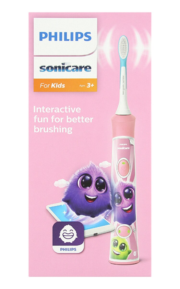 Philips Sonicare For Kids elektriskā zobu birste ir paredzēta bērnu ikdienas zobu un smaganu kopšanai, nodrošinot jautru, saudzīgu un efektīvu tīrīšanu. Tā saudzīgi noņem līdz pat 75% vairāk aplikuma nekā manuālā zobu birste, palīdzot uzturēt zobus tīrus un smaganas veselīgas, vienlaikus mācot pareizu zobu tīrīšanas tehniku. Birstei pievienotā bezmaksas interaktīvā lietotne ar tēlu Sparkliju padara zobu tīrīšanu bērniem aizraujošu, sniedzot motivējošas pamācības un norādes, palīdzot bērniem veidot veselīgus zobu tīrīšanas ieradumus un piešķirot balvas par paveikto progresu. Iebūvētais Bluetooth savieno ierīci ar lietotni, ļaujot sekot tīrīšanas kvalitātei un tehnikai. Interaktīvais KidTimer palīdz bērniem ievērot ieteicamās 2 minūtes zobu tīrīšanai. Birstei ir divi tīrīšanas režīmi, kas piemēroti dažādiem vecuma posmiem, savukārt mīkstie uzgaļi nodrošina komfortu piena zobu kopšanai, efektīvi un saudzīgi noņemot aplikumu pat starp zobiem un gar smaganu līniju. Iespējama arī zobu birstes personalizēšana ar krāsainām uzlīmēm – bērni var izvēlēties savu dizainu, padarot tīrīšanu vēl jautrāku. Komplektā ietilpst elektriskā zobu birste, divi uzgaļi 3+ un 7+ gadu vecumam, astoņas uzlīmes zobu birstes personalizēšanai un lādētājs.
