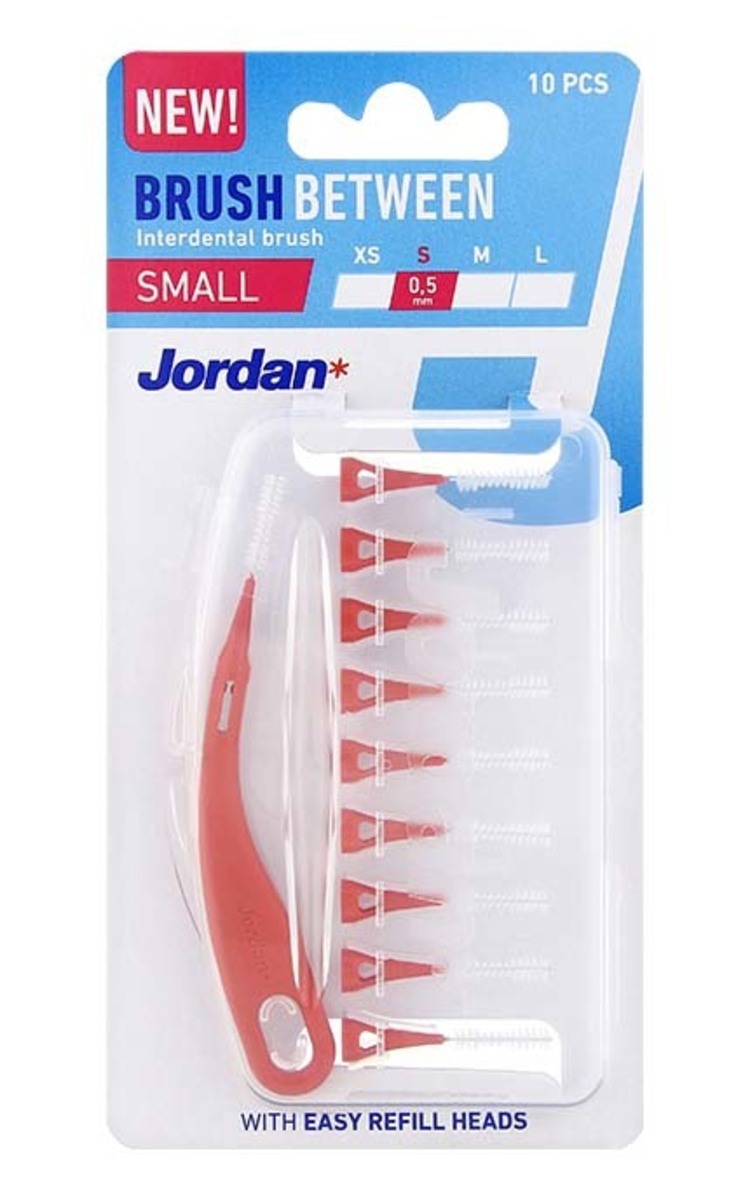 Jordan starpzobu birstītes S (0,5 mm). Unikālas formas starpzobu birstītes ar patentētu WaveCut™ tehnoloģiju lieliski iztīra zobu starpas. Īpaši piemērotas tiem, kas valkā zobu taisnošanas loku, pēc smaganu operācijām, kā arī tiem, kam ir kronīši, metāla keramikas tilti vai implanti. Mīkstais birstītes galiņš viegli iekļūst zobu starpās, īsākie sariņi notīra no visām pusēm, savukārt izvelkot birstīti – garākie sariņi noliecas vienā virzienā, rūpīgi notīrot zobu iekšējās malas. Stieplīte ir ļoti plāna un pārklāta ar gumiju. Birstītes maigi masē smaganas un tās nekairina. Pateicoties gumijas kātiņam, birstīte neslīd no rokām pat, ja tā ir slapja, tāpēc ērtāk var piekļūt pat tālākajām zobu starpām. Pateicoties higiēniskajam uzgalītim, zobu birstīti vienmēr varēsiet nēsāt sev līdzi, savukārt sariņi nedeformēsies. Derīguma termiņam nav ierobežojuma.