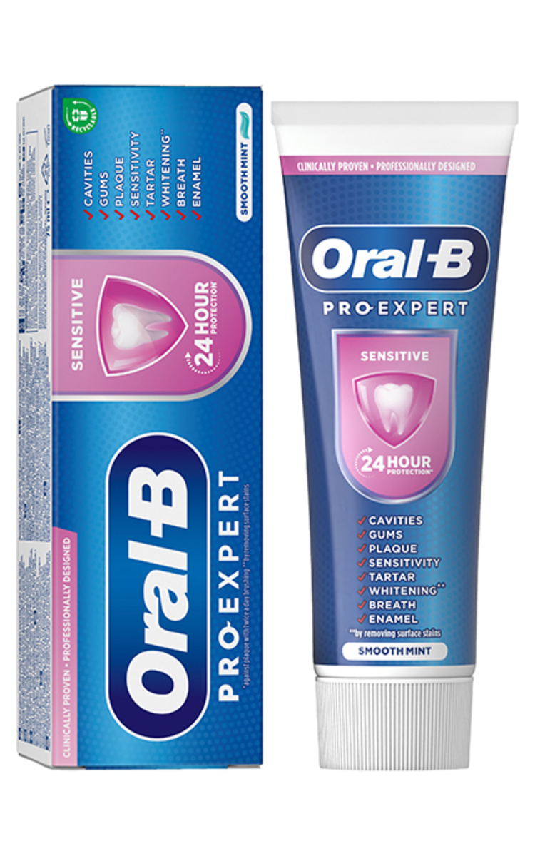 Oral-B Pro Expert Sensitive zobu pastas efektivitāte ir klīniski pierādīta. Tā ir profesionāli izstrādāta kopā ar zobārstiem, nodrošinot dziļu tīrīšanu un 24 stundu aizsardzību, ja zobi tiek tīrīti divreiz dienā.