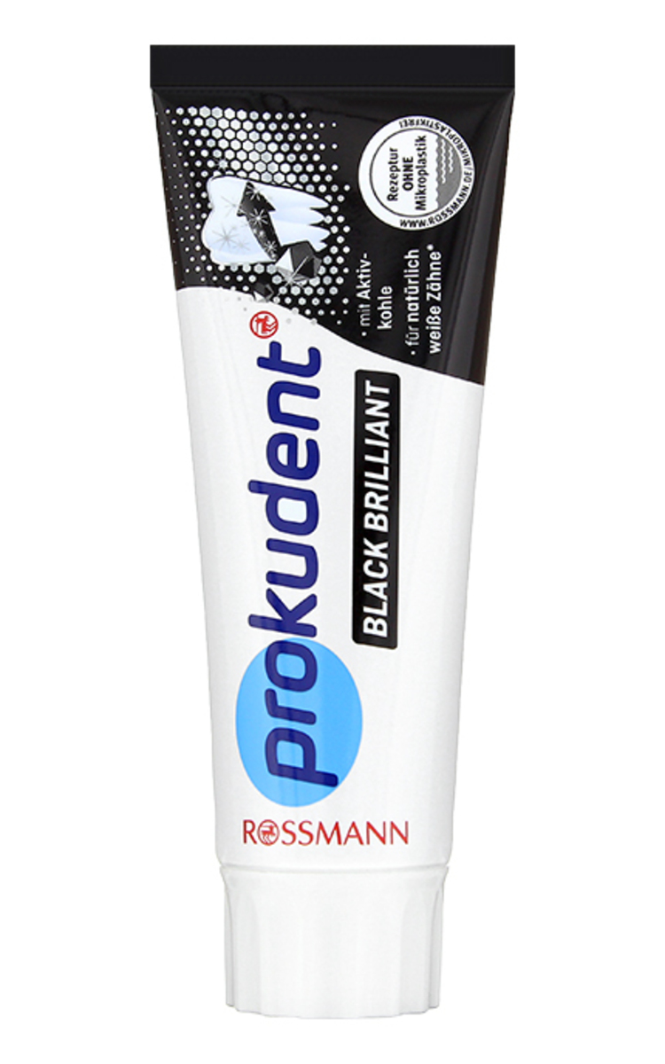 Prokudent Black Brilliant zobu pasta ar aktīvo ogli maigi noņem plankumus no zobiem un baltina tos. Bez balinātāja izmantošanas tas nodrošinās zobu dabisko baltumu. Izmantotais nātrija fluorīds stiprina un remineralizē emalju, sniedzot drošu aizsardzību pret zobu bojāšanos. Kokogles, šķīstošs kalcijs un fluorīdi zobu pastas sastāvā veicina emaljas atjaunošanu un nostiprināšanu, antibakteriālais sastāvs novērš baktērijas, kas izraisa nepatīkamu smaku.
