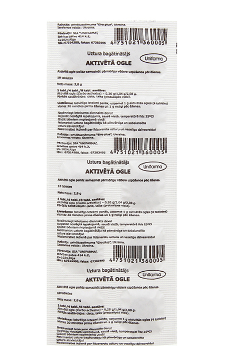 02.10.2025-31.10.2025 Aktivētā ogle, 10 tabletes 10 gab.