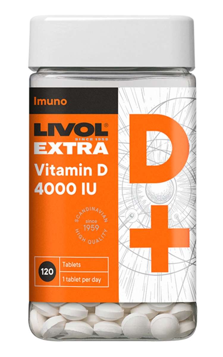Livol Extra Vitamīns D 4000 IU. Imunitātei. D vitamīns veicina normālu imūnsistēmas darbību. Augsta skandināvu kvalitāte kopš 1959. gada.
