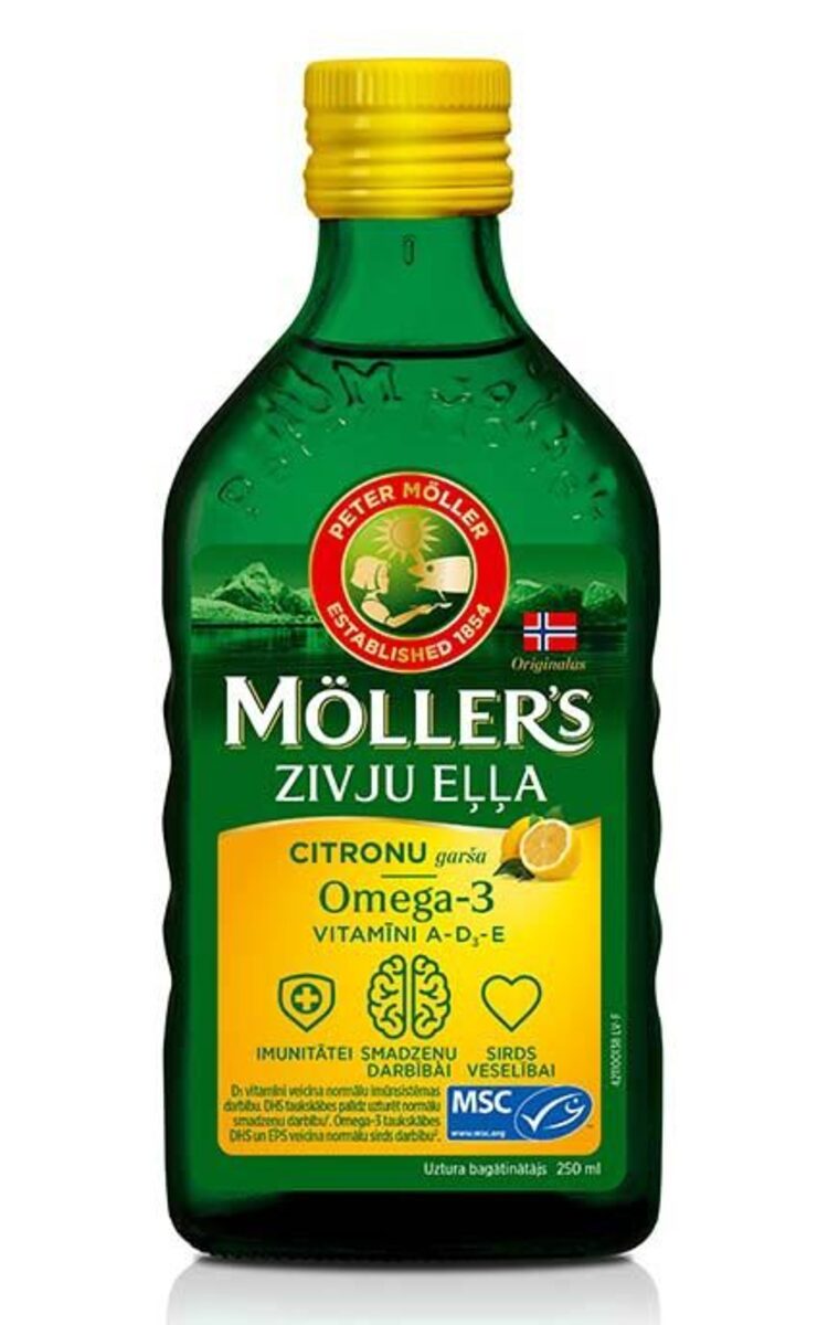 Atsauksmes MOLLER'S šķidrā zivju eļļa ar citronu garšu, 250ml