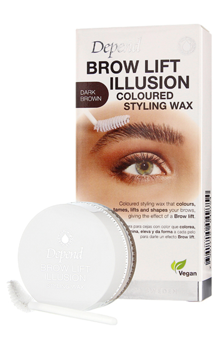 Depend Brow Illusion uzacu veidošanas vasks gaiši brūnā krāsā, krāso, paceļ un veido uzacis. Vasks ātri sacietē un nodrošina ilgstošu noturību, saglabājot uzacu matiņus glīti savās vietās visas dienas garumā.