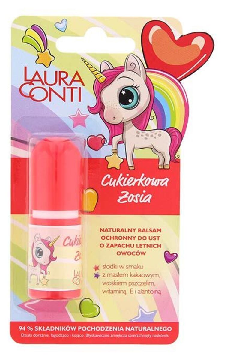 Laura Conti lūpu balzams ar vasaras augļu smaržu. Lūpu balzama sastāvā ir saldo mandeļu eļļa, kakao sviests, bišu vasks, lanolīns, E vitamīns un alantoīns, kas mīkstina un nomierina lūpu ādu.