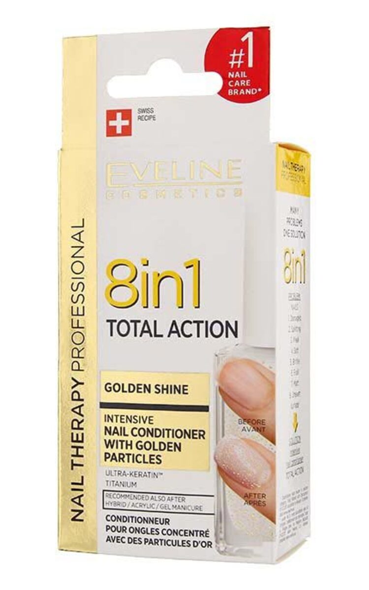 01.12-01.01 EVELINE Nail Therapy Professional Gold 8in1 līdzeklis nagu atjaunošanai, 12ml 12 ml