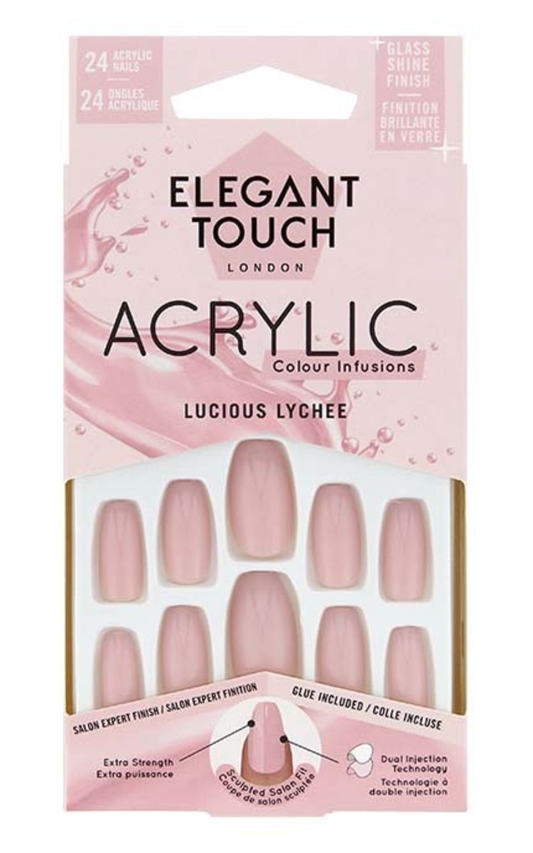 ELEGANT TOUCH Acrylic Color Infusions mākslīgo nagu komplekts, Lucious Lychee, 24gab.