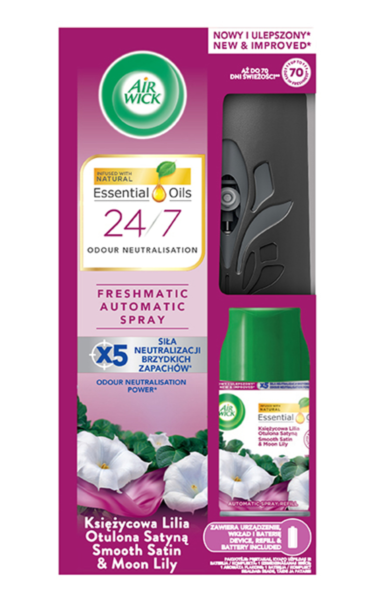 Atlaide ar Drogas karti AIR WICK Smooth Satin&Moon Lily automātiskā gaisa atsvaidzinātāja komplekts, 250ml 250 ml