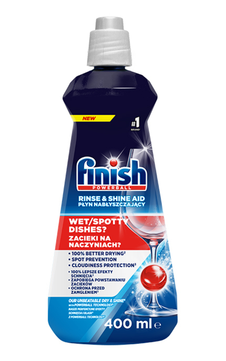 Skalošanas cikla laikā ēdiena un mazgāšanas līdzekļa paliekas var atkal nogulsnēties uz traukiem, atstājot uz tiem traipus. Finish skalotājs ne tikai noskalo ēdiena atliekas, traipus un kaļķakmens nogulsnes, bet arī uzlabo trauku žāvēšanas procesu, pateicoties „Quick dry” ātrās nožūšanas sastāvam.