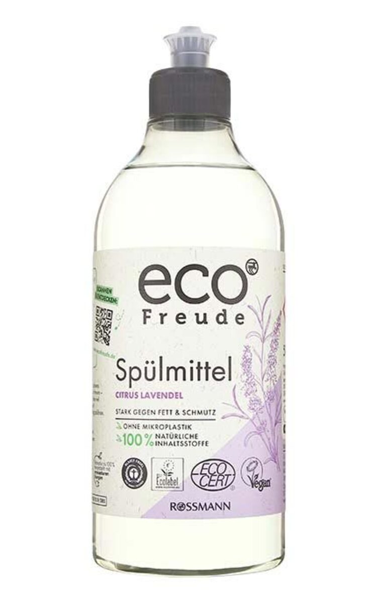 Eco Freude citrusa un lavandas ekstrakta trauku mazgāšanas līdzekļa sastāvā ir 100% dabiskas izcelsmes sastāvdaļas. Trauku mazgāšanas līdzeklis ar patīkamu citrusa-lavandas aromātu efektīvi nomazgā tauku un ēdiena paliekas pat zemā temperatūrā, tādējādi mazinot enerģijas un ūdens patēriņu, kā arī ietekmi uz vidi. Produkta iepakojums ir ražots no 75% pārstrādātas plastmasas.