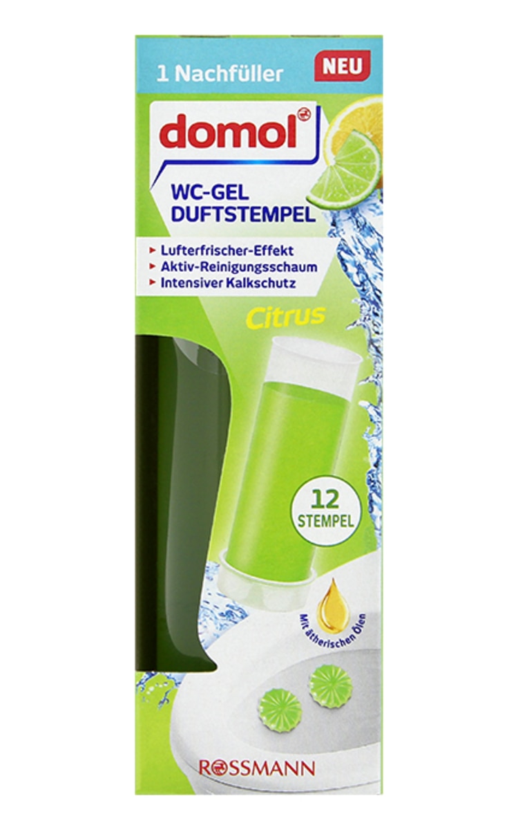 Izbaudiet patīkamu citrusaugļu aromātu un nevainojamu tualetes tīrību ar Domol WC-Gel Citrus tualetes poda atsvaidzinātāju. Pateicoties īpašajai gēla formulai ar ēteriskajām eļļām, šis produkts nodrošina ilgstošu svaigu smaržu un gaisa atsvaidzinātāja efektu, veido aktīvas tīrīšanas putas, kas aizsargā pret netīrumu nogulsnēm, sniedz intensīvu aizsardzību pret kaļķakmens un urīnakmens veidošanos un neitralizē nepatīkamas smakas. Piemērots arī tualetēm bez skalošanas malas. Viens iepakojums pietiek 12 lietošanas reizēm.