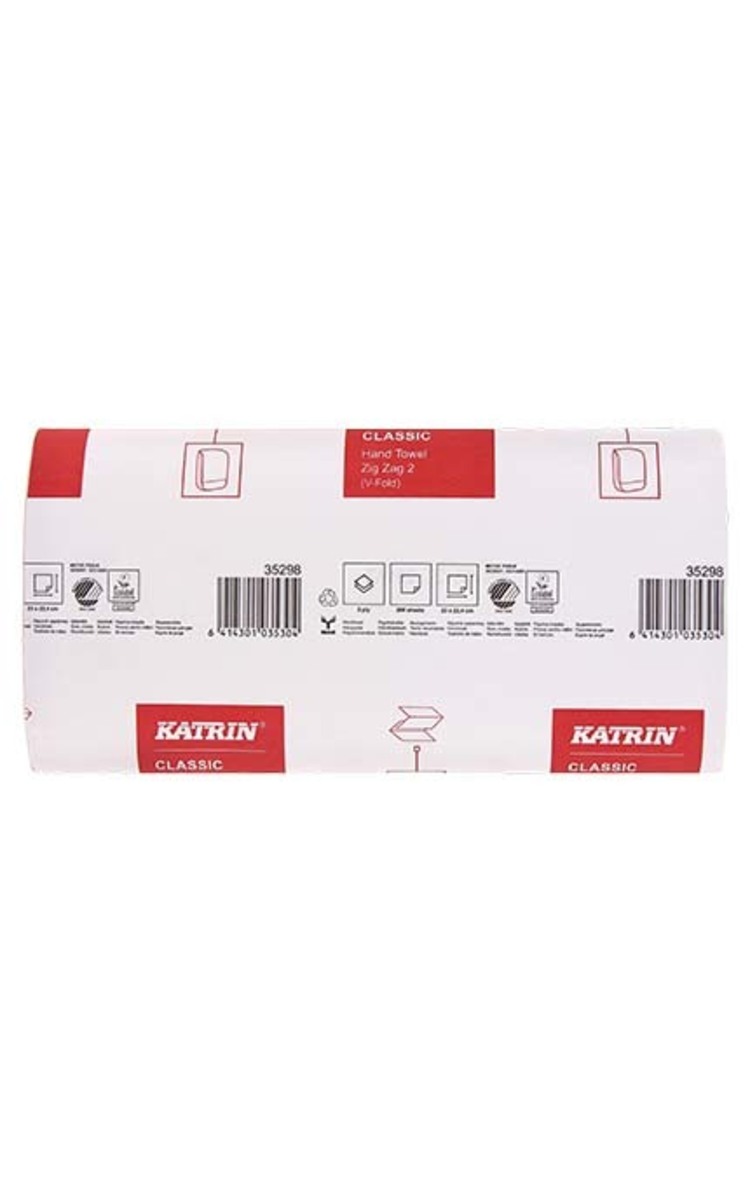 Katrin Classic roku dvieļi loksnēs Zig Zag 2 (V-Fold). Izgatavoti no jauktas šķiedras celulozes divslāņu balti papīra dvieļi ikdienas pielietojumam. 200 loksnes paciņā, vienas loksnes izmērs: 22.4cm x 23.0cm.