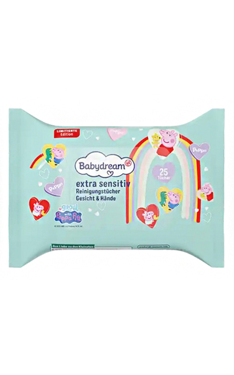 BABYDREAM Extra Sensitive Peppa Pig mitrās salvetes sejai un rokām, 25gab.