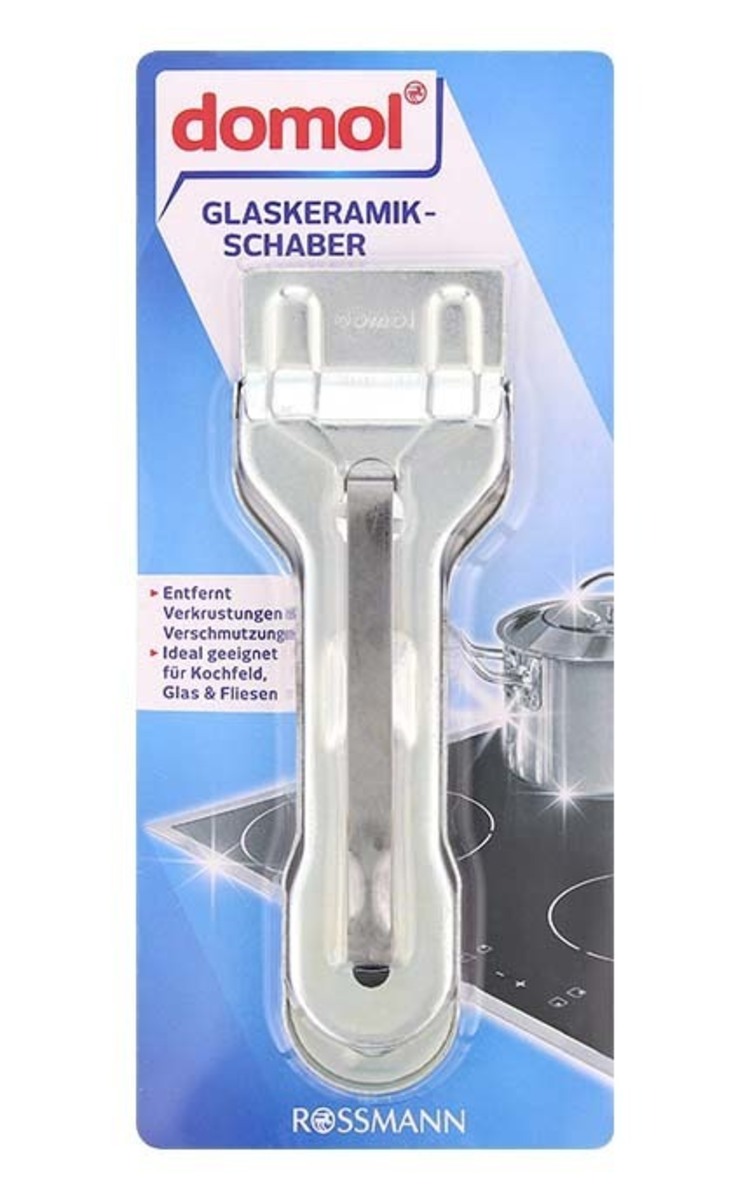 Ar Domol skrāpi bez pūlēm iespējams noņemt visus, arī noturīgus netīrumus. Plīts virsmas turpmākai tīrīšanai un kopšanai perfekti piemērots Domol stikla keramikas tīrīšanas līdzeklis.