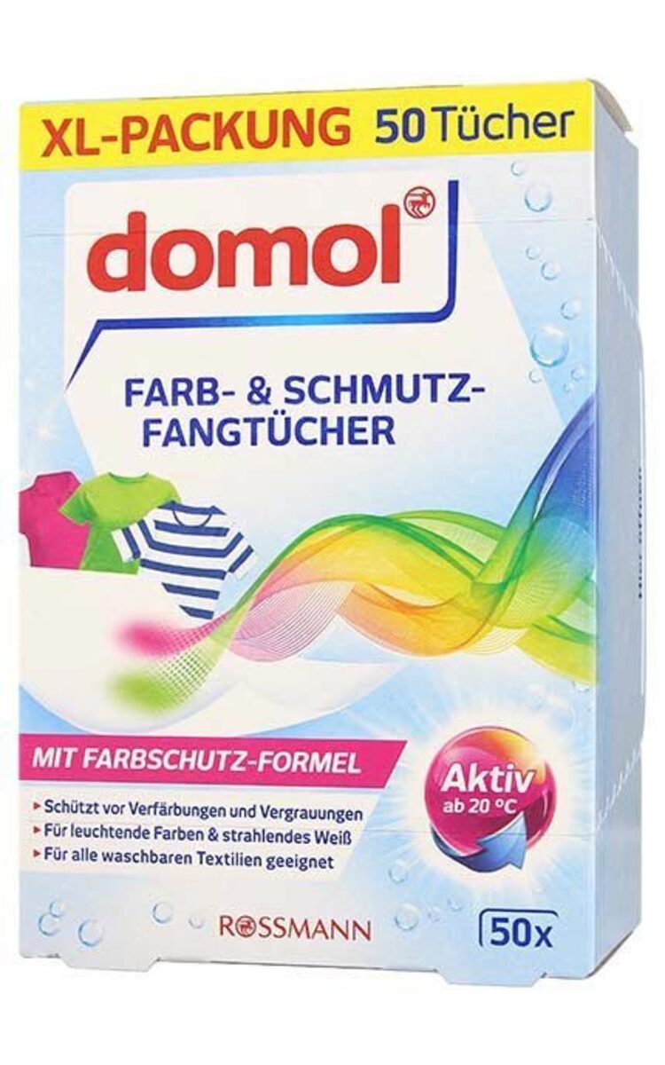 Atsauksmes DOMOL Salvetes krāsu un netīrumu savākšanai veļas mazgāšanas laikā, 50gab.