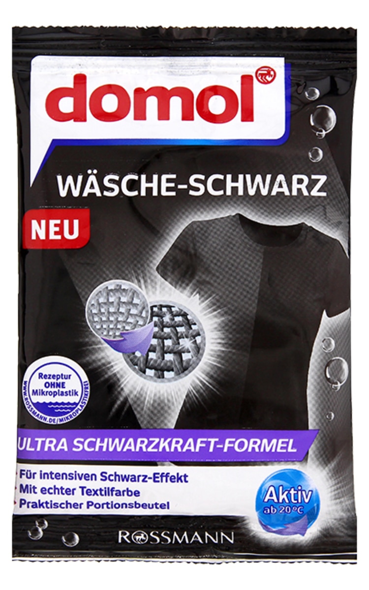 Izbaudiet koptu un mirdzoši melnu apģērbu ar Domol Wäsche-Schwarz! Regulāri lietojot, melnā krāsa saglabājas intensīva un apģērbs izskatās kā jauns. Nav nepieciešama atkārtota skalošana.