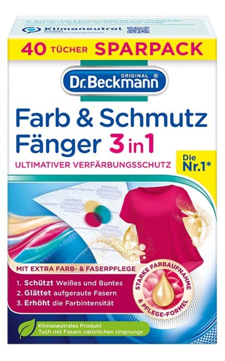 Ar Dr. Beckmann salvetēm apģērba krāsas saglabājas košākas un baltās paliek starojoši baltas, tādēļ apģērbs un drēbes ilgāk izskatās kā jaunas!