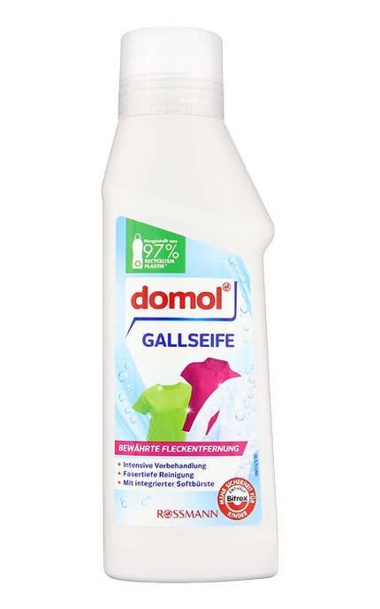 Желчное мыло Domol используется для целевой предварительной обработки белья и оказывает сильное воздействие на различные пятна, такие как пятна от шоколада, масла, жира, косметики и крови. Мылом легко пользоваться благодаря встроенной мягкой щеточке.