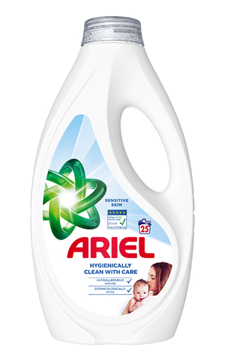 Жидкое средство для стирки Ariel Sensitive Skin разработано для ухода за чувствительной кожей и обеспечивает гигиеническую чистоту и мягкость тканей. Формула дерматологически протестирована и одобрена Европейским центром исследований аллергии (ECARF). Отдушка является гипоаллергенной и снижает риск аллергических реакций. Средство помогает сохранять мягкость ткани при контакте с чувствительной кожей, обеспечивая при этом надёжную чистоту даже при стирке в холодной воде. Для наилучшего результата дозирующий колпачок со средством рекомендуется поместить в барабан стиральной машины. По экологическим причинам не все бутылки оснащены колпачком; его можно бесплатно заказать на сайте ariel.info.