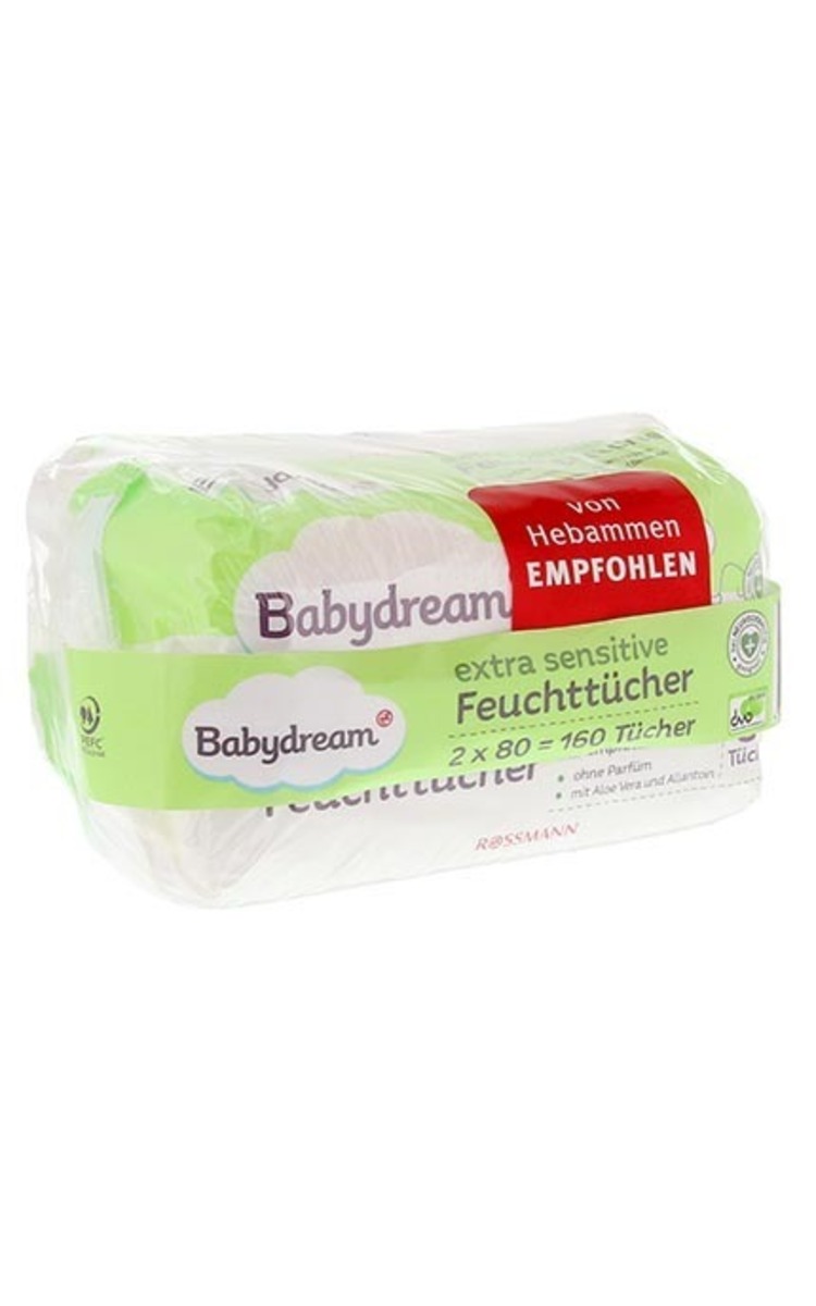 Отзывы BABYDREAM Extra Sensitive влажные салфетки, 2х80шт.