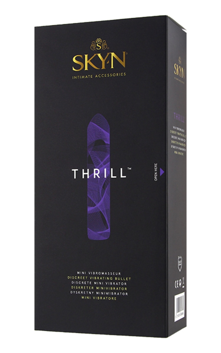 SKYN THRILL – женский массажер "пулевого" типа для одиночных игр или для использования с партнером, имеет три различные скорости вибрации, поэтому его можно использовать в качестве мягкого массажера или устройства с интенсивной вибрацией для увеличения чувственного удовольствия.