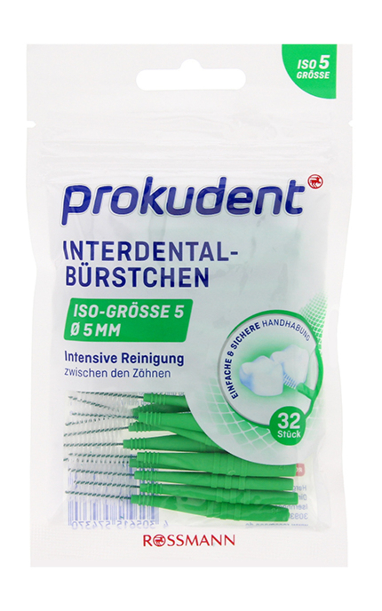 Prokudent щёточки размера 5мм для бережного и тщательного очищения зазоров между зубами. Особо подходят для очищения выравнивающих зубы дуг, коронок, металлокерамических мостов и имплантантов, а также используются после операций на дёснах.